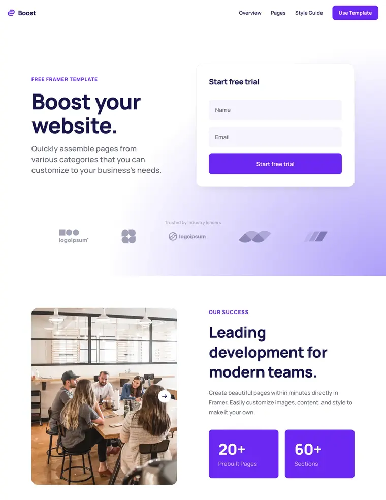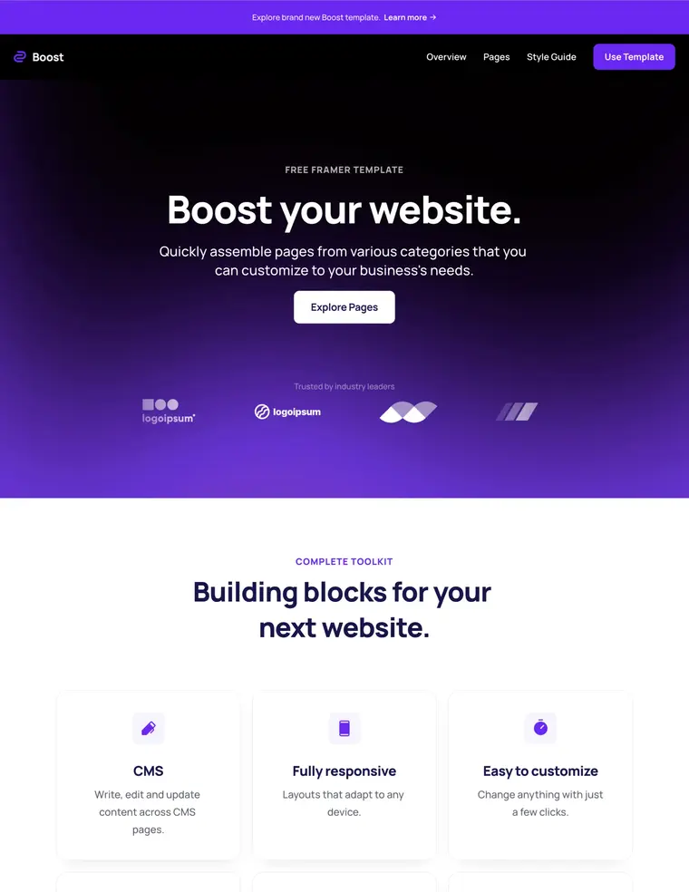 Create beautiful pages within minutes directly in Framer. Easily customize images, content, and style to make it your own.